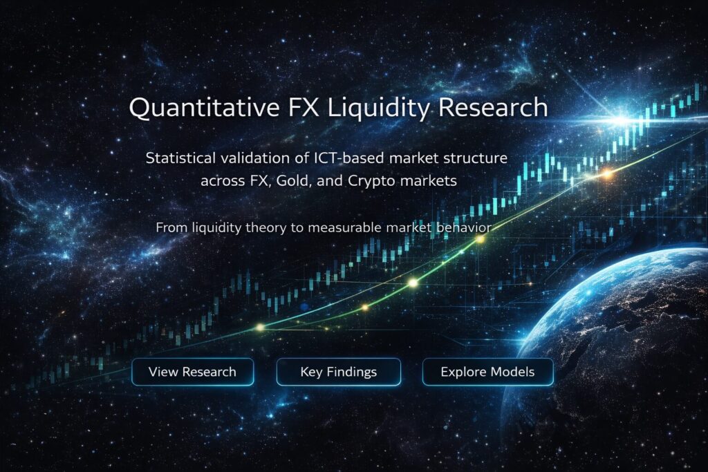 Recent quantitative studies on session liquidity behavior and displacement events across major FX pairs.